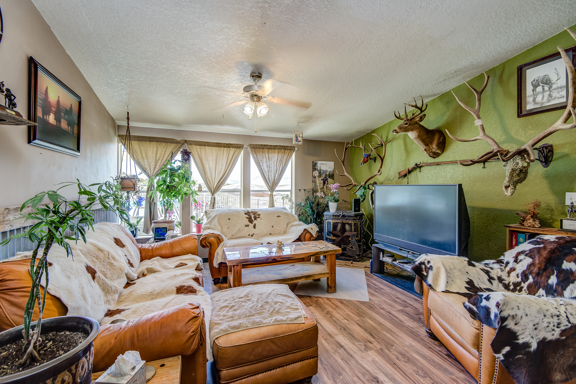 This estate boast many mature fruit trees, shade trees, established landscaping, a nice pond, and plenty of porch space. The home itself is a 1,877 SF triple-wide manufactured home. There is 800 SF of custom built covered porches. New laminate floors are installed throughout the homes. There is gorgeous custom wood work, dual walk in master bedroom closets. There are high ceilings, an open and spacious kitchen and so much more.