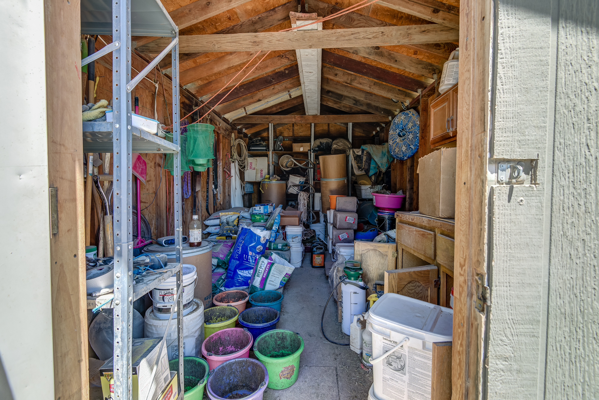 Build your own ranch. This 16 acre property is set up for horses, cattle, goats, llamas, alpacas and more, it is a great location for a breeding facility, boarding facility, or private horse property. Four of the sixteen acres are fenced and crossed fenced. There are plenty of stalls in the mare motel. There are tack sheds, and workshop spaces. The additional twelve acres could be turned into a great producing vineyard, orchard, used as grazing land, used as a buffer, or it could be sold. The possibilities are endless. Currently the property is divided into two, two acres lots and one twelve acre lot. There is a lot of flexibility in ways to use this property.